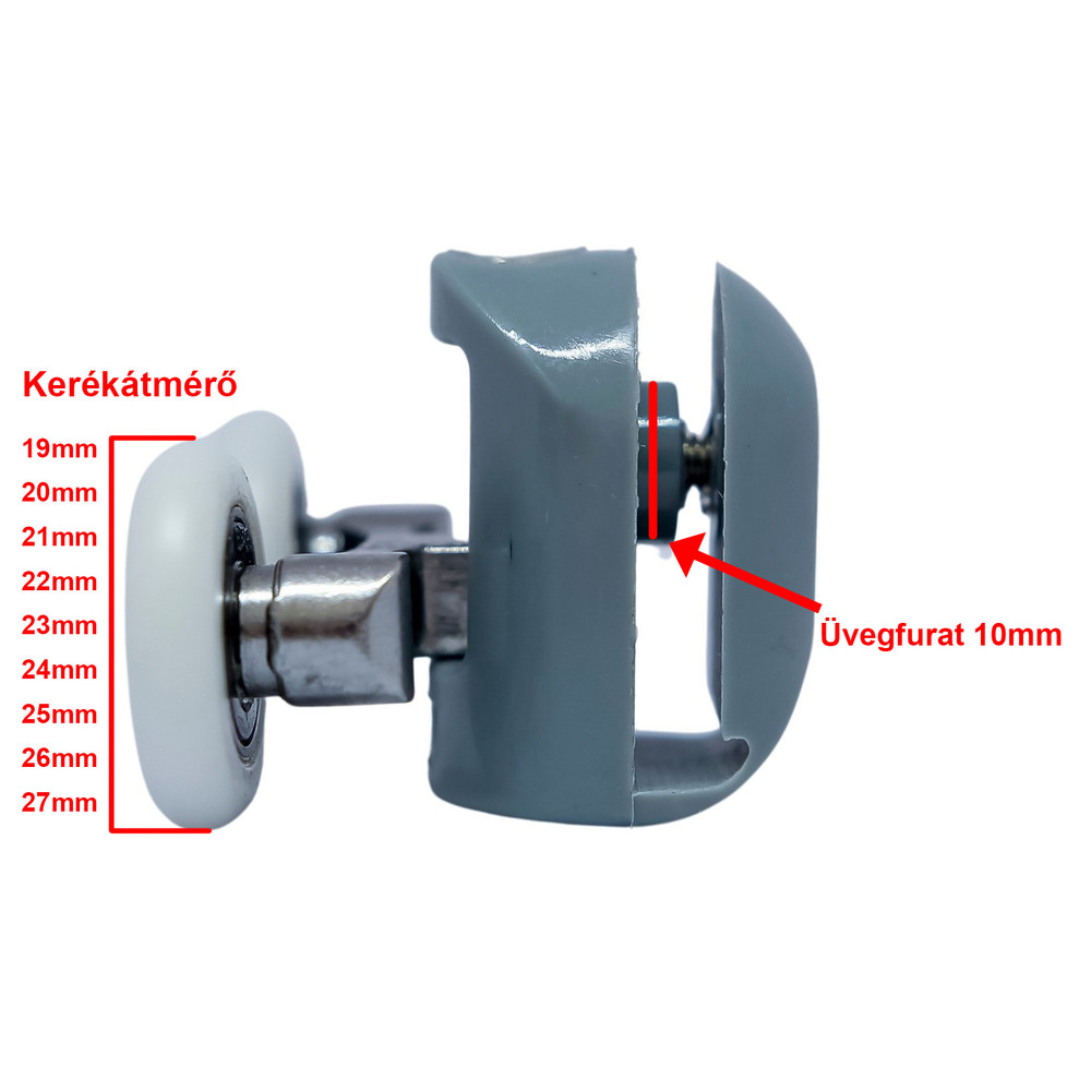 Rolă pentru cabine de duș TOP cu două roți și șurub articulat pentru reglare ușoară, potrivită atât pentru cabine de duș curbate, cât și pentru cele unghiulare. Acesta este un tip de rolă frecvent utilizat de distribuitorii de cabine de duș, versiunea de 23 mm fiind deosebit de remarcabilă. Cele două roți asigură o capacitate de încărcare ridicată și o durată de viață mai lungă pentru utilizator. Produsul poate fi reglat cu ajutorul unui șurub în formă de stea, deplasându-l în sus și în jos pe o tijă filetată, în funcție de direcția de rotație a șurubului. De obicei , este asociat cu butonul unic Z-30SB, rola dublă Z-30DB sau glisorul pentru cabine de duș ZCS-1.