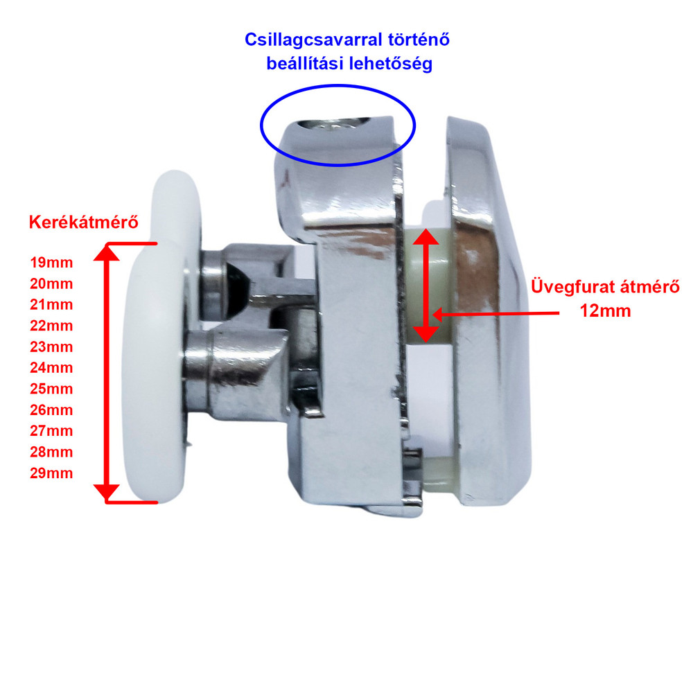 ROLĂ PENTRU CABINĂ DE DUȘ CU ROȚI DUBLE AQUAMAXX, REGLARE CU ȘURUB STELAT, DIAMETRU ROȚI 19-27 MM, ROȚI DIN OȚEL INOXIDABIL ȘI DIN ALTE MATERIALE
